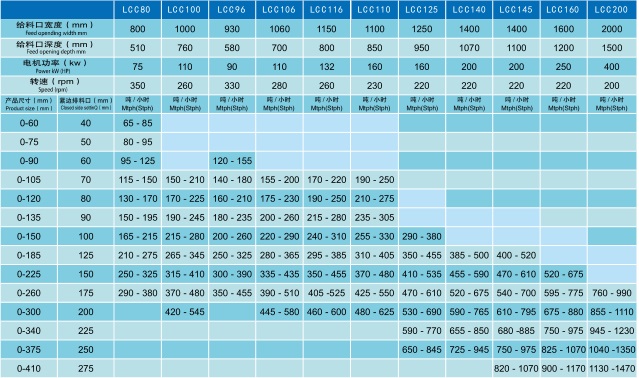 LCC Series jaw crushers can be installed on track-mounted, full mobile crushing plants, and has also on wheel-mounted and semi-mobile plants. Mobile crushing equipment offers considerable benefits, including less quarry traffic, less dust, noise and exhaust emissions.